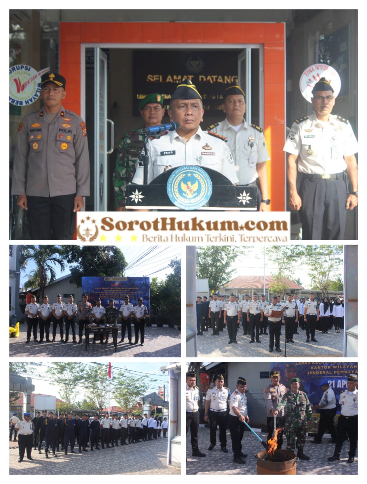 BENGKALIS – 🇮🇩⚖️Sorothukum.com Lembaga Pemasyarakatan (Lapas) Kelas IIA Bengkalis menggelar Apel Ikrar Bebas Peredaran Narkoba dan Handphone yang dirangkaikan dengan pemusnahan barang bukti hasil razia periode Januari s/d April 2026 di lapangan serbaguna pada Rabu (22/04). Kegiatan monumental ini dilaksanakan dalam rangka memperingati Hari Bakti Pemasyarakatan (HBP) ke-62, sebagai wujud nyata dedikasi dan komitmen jajaran petugas dalam menjaga marwah institusi. Dipimpin langsung oleh Kalapas Bengkalis, Priyo Tri Laksono, serta dihadiri perwakilan Polres Bengkalis Kompol Noak Pembina Aritonang S.I.K dan Kodim 0303 Serda Japri Rohim, aksi ini menjadi penegasan bahwa di usia yang ke-62, Pemasyarakatan harus benar-benar bersih dari praktik ilegal demi mewujudkan lingkungan yang aman, tertib, dan berintegritas.