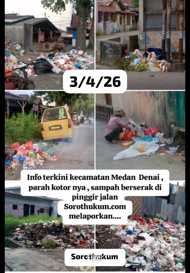 Medan l sorothukum Jumat 3/4/206 –.Sampah yang berserakan di pinggir jalan khususnya di kawasan Kecamatan Medan Denai menjadi sorotan serius karena merusak pemandangan dan menimbulkan bau tak sedap.