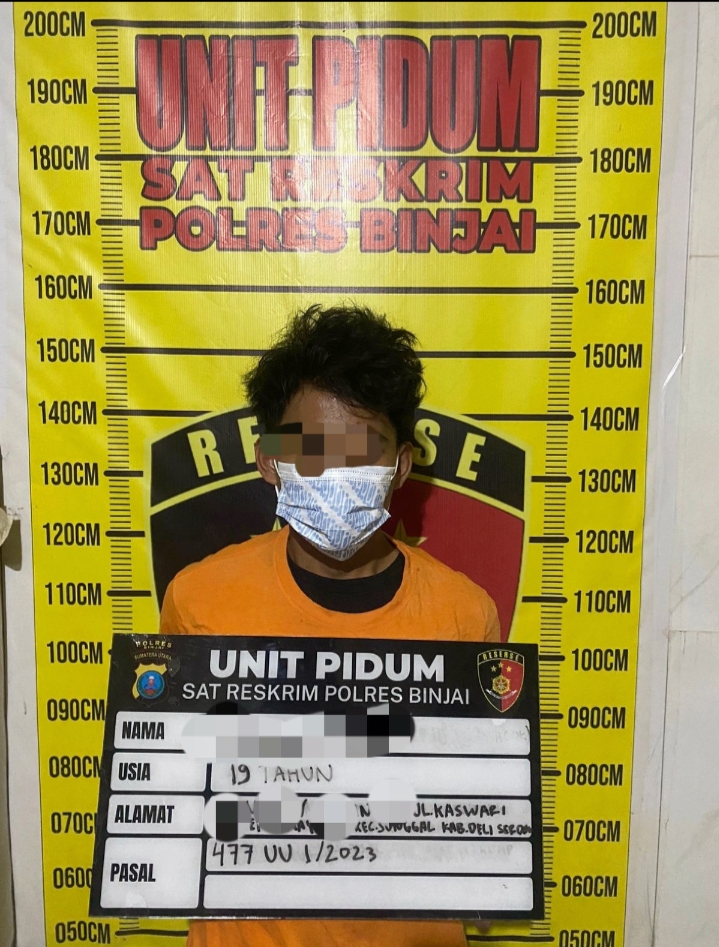 *BINJAI* – sorothukum.com -Polres Binjai menangkap seorang pelajar berinisial RS, 19 tahun, terkait kasus pencurian dengan pemberatan atau curat sebagaimana dimaksud dalam Pasal 477 Undang-Undang Nomor 1 Tahun 2023 tentang KUHP.