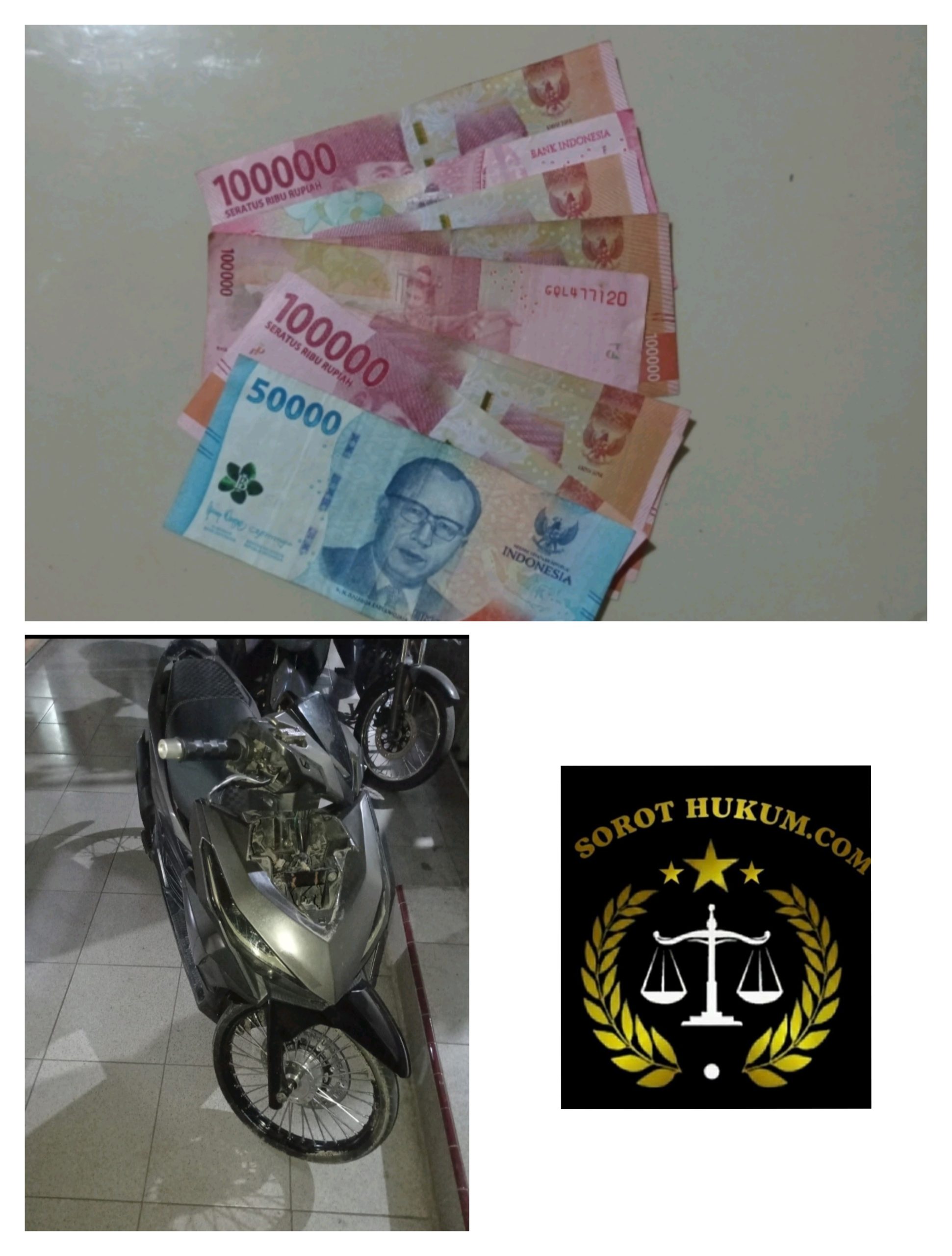Dari tangan tersangka, petugas menyita barang bukti berupa satu unit sepeda motor Vario 150, satu helai celana pendek putih biru bercorak kotak-kotak, satu helai sweater hoodie abu-abu, serta uang tunai senilai Rp950.000.