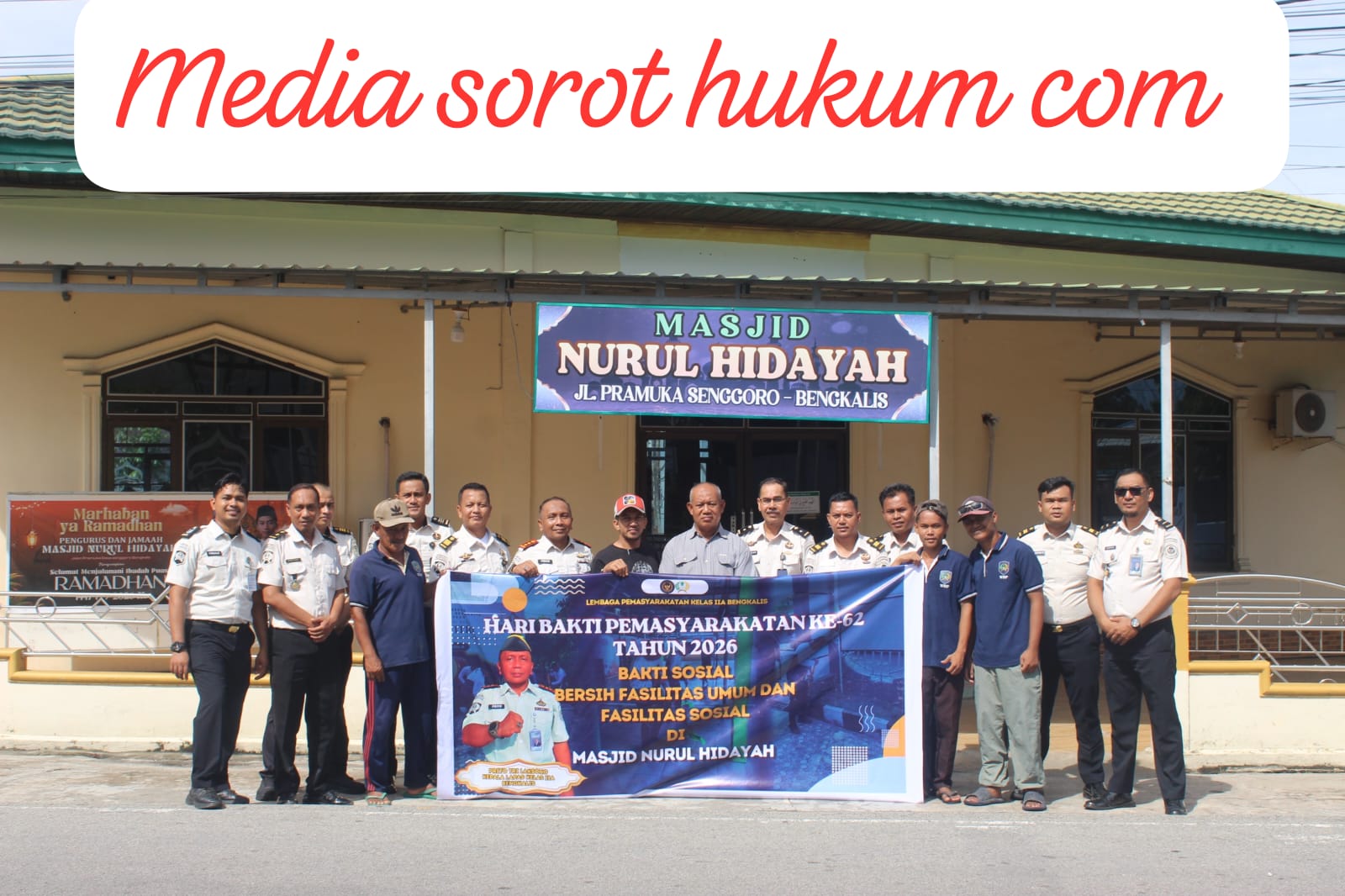 Sorot Hukum com –BENGKALIS – Menyongsong peringatan Hari Bakti Pemasyarakatan (HBP) ke-62, jajaran Lembaga Pemasyarakatan (Lapas) Kelas IIA Bengkalis melaksanakan aksi bakti sosial dengan membersihkan fasilitas umum di Masjid Nurul Hidayah, Desa Senggoro, Kamis (09/04). Kegiatan yang dimulai sejak pagi hari ini melibatkan para pejabat struktural, staf, hingga warga binaan yang tengah menjalani proses asimilasi untuk bergotong-royong merapikan area masjid, mulai dari menyapu halaman, membersihkan tempat wudhu, hingga mengepel. Aksi nyata ini merupakan wujud dedikasi pemasyarakatan kepada masyarakat serta upaya mempererat silaturahmi antara institusi dengan warga sekitar di wilayah Desa Senggoro.